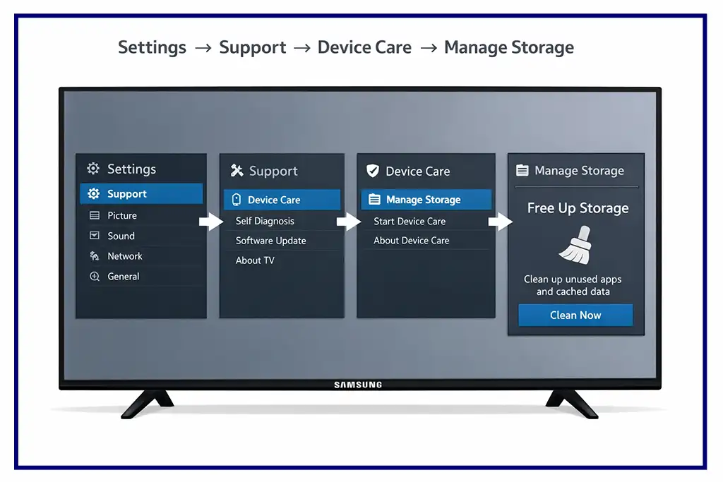 スマートTVは通常、RAMと内部ストレージが比較的少なく設計されています。時間が経つにつれて、より多くのアプリがインストールされると、これらのアプリによって作成されたキャッシュデータが蓄積され、利用可能なメモリがいっぱいになります。